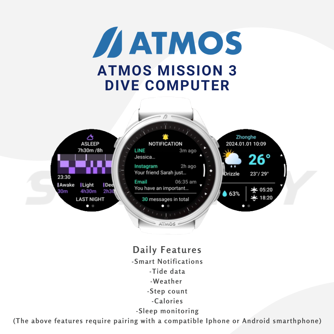 Mission Three is a powerful and intelligent dive computer for scuba and free diving enthusiasts. Its advanced alarm system provides instant vibration and intuitive display notification. Equipped with GPS and digital compass make users stay oriented underwater and meanwhile upload dive site’s GPS location to ATMOS’s divelog App above surface. Robust and sleek, it’s the most desirable dive companion to ensure professional and recreational divers the best diving experience.